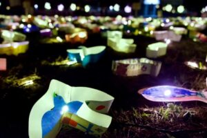 長門市出身の童謡詩人・金子みすゞの詩をテーマに、詩の朗読と光が織りなす幻想的な演出が広がり、地元の子どもたちが制作した数千の「あかりのうつわ」が温泉街を優しく照らします。